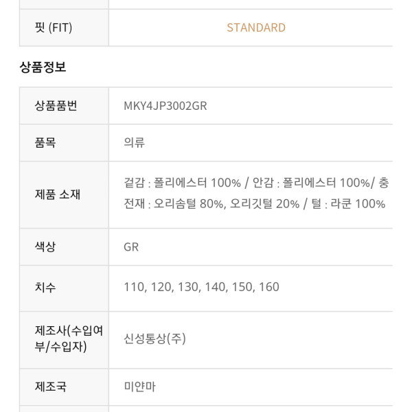 덕 다운 점퍼 입니다.