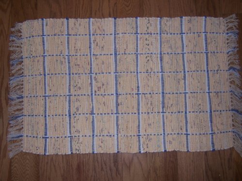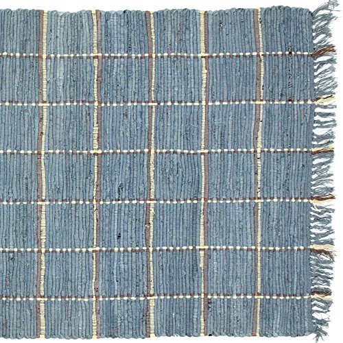 Cobblestones Blue 30" x 50" Woven Rug30" Deep x 50" Wide 100% Cotton. Colors of blue, cream, burgundy. Woven rugs are made from hand dyed cotton rags so slight variations in color may occur. Priced and sold individually. Designed and manufactured by India Overseas Traders.Feature