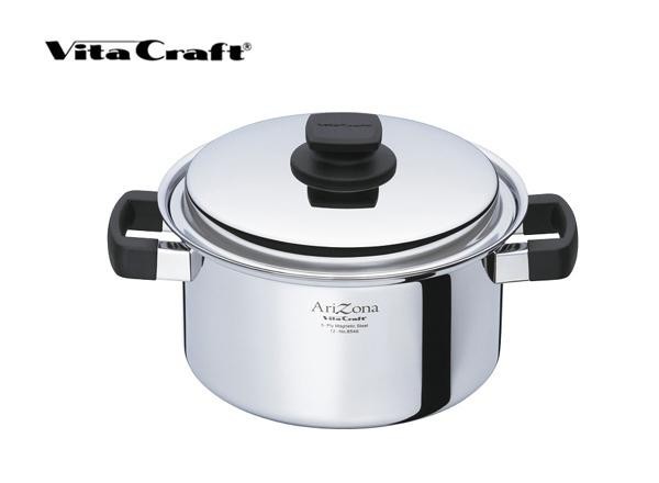 無水・無油調理で美味しくヘルシーに!!素材の味をぐっと凝縮します。 製造国:ベトナム 素材・材質:ステンレス・アルミニウム・アルミニウム合金・電磁性ステンレス 商品サイズ:内径21.0cm×深さ11.5cm 仕様:容量:4.0L対応熱源:ガス、IH200V、ハロゲンヒーター、ラジエントヒーター、シーズヒーター 付属品:蓋 ※サプライヤー直送品 ご注文後3~4営業日後の出荷となります【商品名】VitaCraft Arizona(ビタクラフト アリゾナ) 両手ナベ 21cm 8546