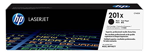 HP 201X (CF400X) toner cartridge works with: HP Color LaserJet Pro M252, M277.