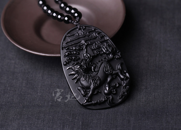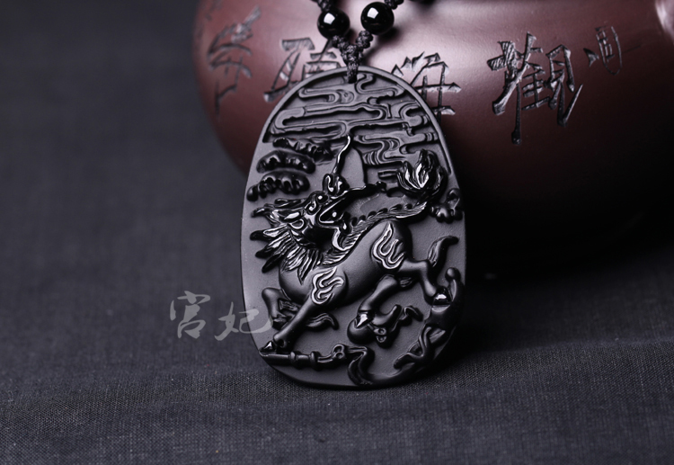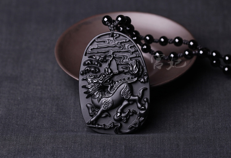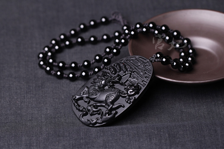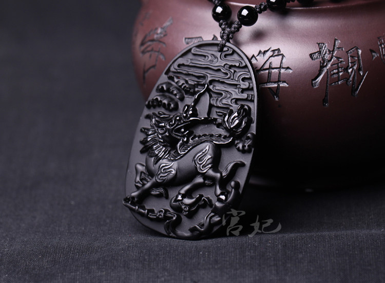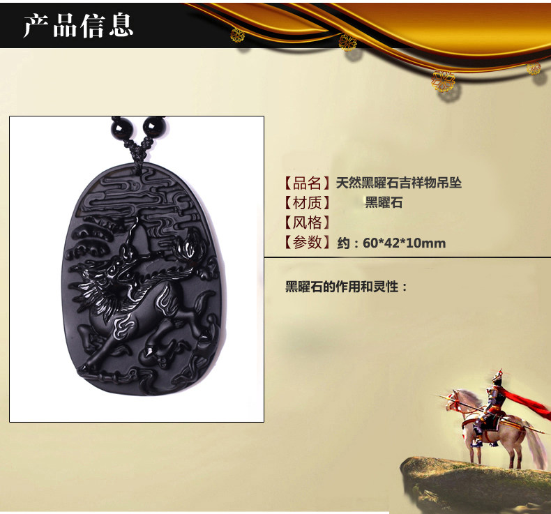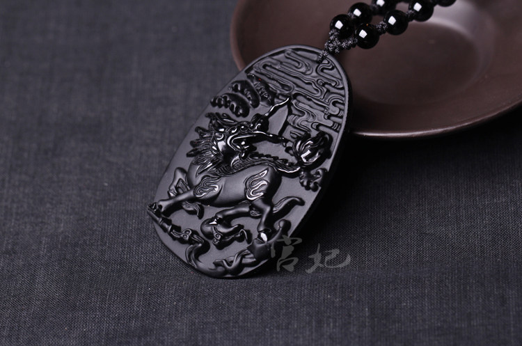 开光天然黑曜石挂坠生肖属鼠吉祥物 瑞麟添寿吊坠