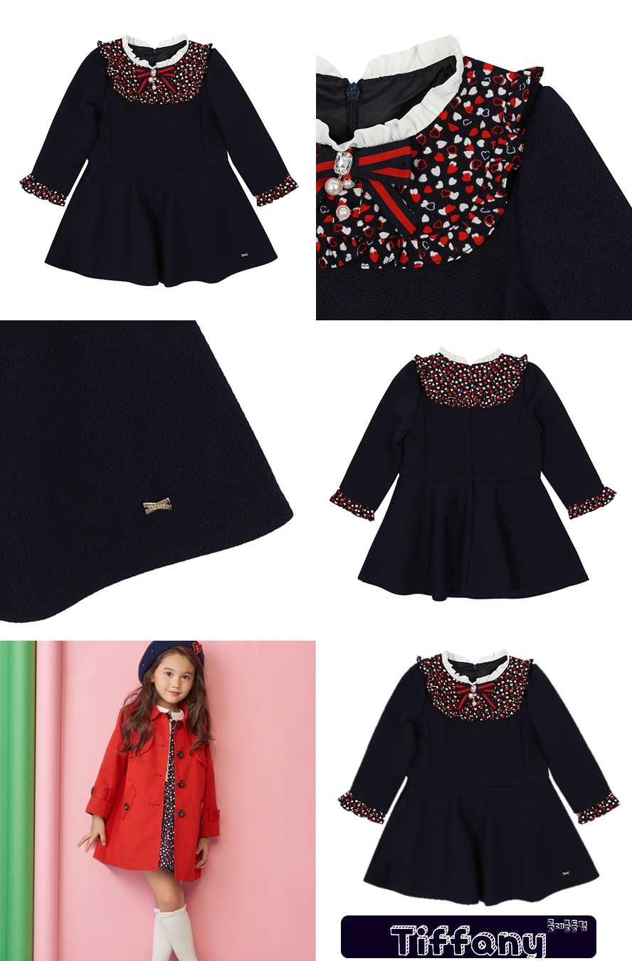 고급스러운 배색프릴디테일의 원피스로 소매프릴과 몸판프릴이 한층더 귀여운 느낌을 주는 원피스로 탈부착브로찌도 같이 구성되어있는 아이템입니다.