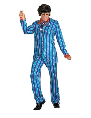 -. Feature : Includes: Jacket, pants, faux shirt liner, ascot and pair of toy eye glasses (wig not included). / Adult size 50-52 / Official Austin Powers licensed product