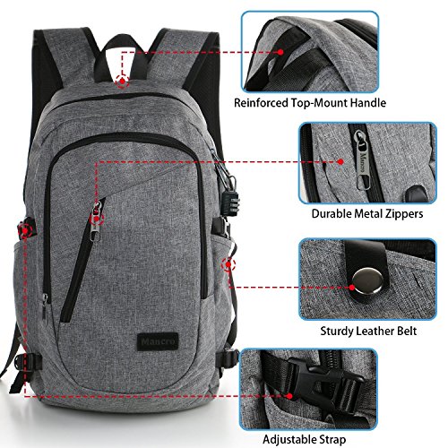 | (Mancro)/Accessories/Luggage, Bags Travel/DIRECT FROM USA/Mancro Business Water Resistant Polyester Laptop Backpack with USB Charging Port and Lock Fits ... |