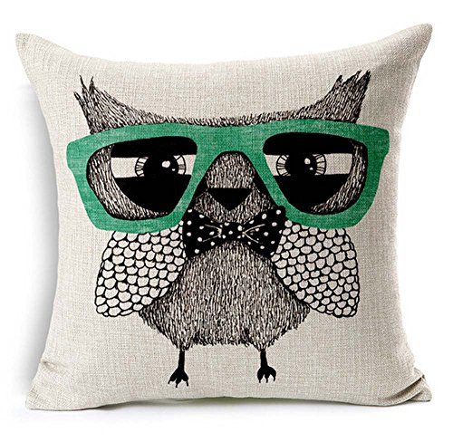 Animal Birds Owl Green Glasses Cotton Linen Throw Pillow Case Cushion Cover Home Sofa Decorative 18 X 18 Inch