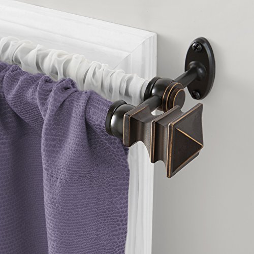 Studio : Kenney Publisher : Kenney Binding : Misc. Product Description Create a layered look with the arts crafts double curtain rod by Kenney. The double metal rods have an Oil Rubbed Bronze finish with matching decorative finials. The set includes two 5/8 inch diameter telescoping rods that adjust to fit your window with the font rod projects 4 ⅜" from the wall and the rear 1 1/2". the double mounting brackets have an attractive closed-loop euro design. The arts crafts double curtain rod can be used with light, medium and heavy weight curtains. Layering your curtains enhances privacy and provides more insulation year-round. This versatile double curtain rod is ideal for living rooms, bedrooms and dining rooms. To create a contemporary look, use with grommet curtains. Mounting hardware and instructions are included. 0