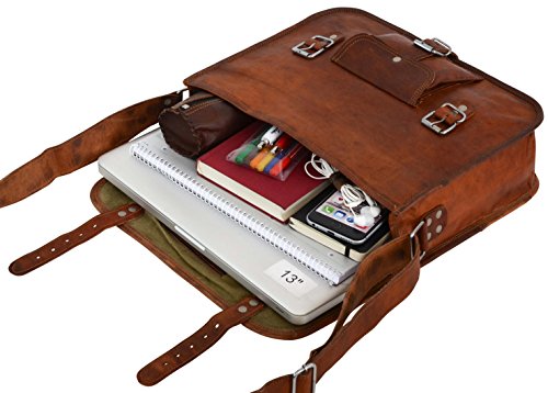 -. Feature : Größe: 30,5 cm x 24,5 cm x 7,5 cm (Notebook bis 11,6" Zoll), 1 großes Innenfach, 4 weitere Innenfächer, 1 aufgesetztes Außenfach / vegetabil (pflanzlich) gegerbtes und gefärbtes Ziegenleder, von kleinen Familienunternehmen produziert / Handgefertigte und praktische Lederumhängetasche im VintageLook, eignet sich hervorragend als Handtasche, Umhängetasche, Festivaltasche, Freizeittasche oder auch als Partytasche / Diese schicke, dunkelbraune Umhängetasche aus einzigartigem, robusten Ziegenleder ist hervorragend geeignet als Shopper, Weekender, Business Bag, Unterlagentasche, DocBag, Schreibmappen Tasche, Aktentasche, Aktenkoffer, Überschlagtasche, Fototasche, Bürotasche und glänzt durch ein tolles und außergewöhnliches Design / Ideal als Citytasche, Citybag, Herrentasche, Damentaschen, Frauentasche, Abendtasche, Schultertasche, CrossoverBag, Ledertasche, Partytasche, kleines Geschenk, Reisegepäck, Handgepäck, UniTasche, Shoppingtasche, Dokumententasche, MeetingTasche, Freizeit Tasche, Old School Tasche, Vintagetasche, braune Tasche, dunkle Tasche, Echt Leder Tasche, Allrounder, BodyBag, mittelgroße Tasche und vieles mehr, besticht durch ihr natürliches echtes Leder
