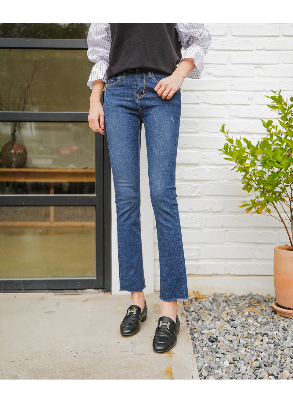 세미 부츠컷으로 부담없이 데일리로 입기 좋은 데님팬츠,