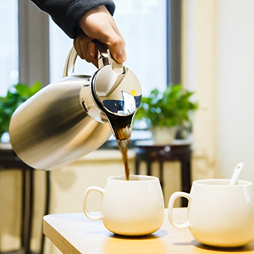 Open leaf-proof top by a push button, easy to one-handed pouring drinks, ideal for home & office & outdoor and restaurant use. Spill-proof Design: A press of button to pour the coffee, preventing it from spilling