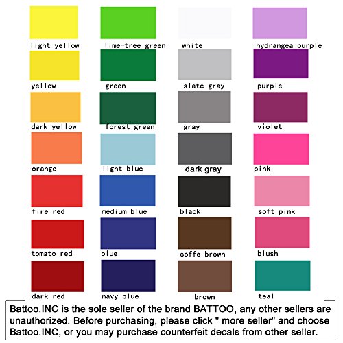 -. Feature : Notice for Customer:Battoo.INC is the sole seller of the brand BATTOO, any other sellers are unauthorized. Before purchasing, please click " more seller" and choose Battoo.INC, or you may purchase counterfeit decals from other seller. We just can promise the quality of BATTOO. / Our vinyl wall decal can be applied on most flat surfaces,including interior & exterior walls,mirrors,glass or any smooth surface.Do not apply vinyl wall decal on painted surfaces with Teflon,stain guard or VOC paints that have been used. / BATTOO wall decal come in OVERALL SIZE like our size options show, but not layout size. If you get layout size, you may purchase counterfeit product from other seller. Please note that these vinyl wall decals are removable but not reusable. / Apply Sestions: Take a credit card, rub the whole image before you even start peeling.(Follow the apply instructions come with each order.) / It's easier and cheaper to add vinyl art on your interior walls than hiring an artist.Every graphics will be cut in several parts, first put up the larger,then is the smaller pieces.Your work would be creative after you finished it!This is an original design from BATTOO!