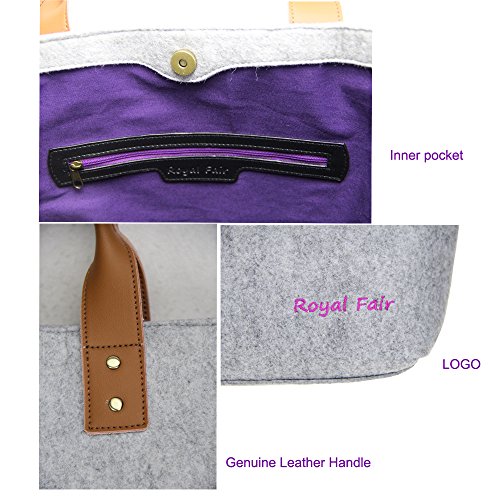 -. Feature : Size:12.6 x 4.13 x 16.93 inch / Quality Felt Material,Cotton Linning.Environmentally friendly and no foul smell.Very healthy material / Genuine Leather Handle.Very comfortable feel, durable / Embroidery LOGO.ROYAL FAIR brand handbags, give you queen's service / Felt Bag.simple but fashion