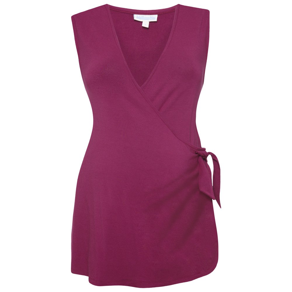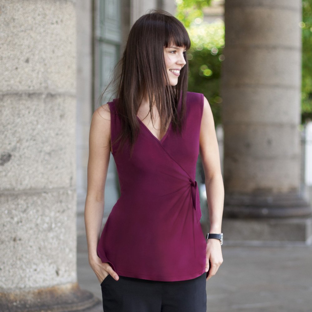 Elegant lap type sleeveless top recommended for working mother.