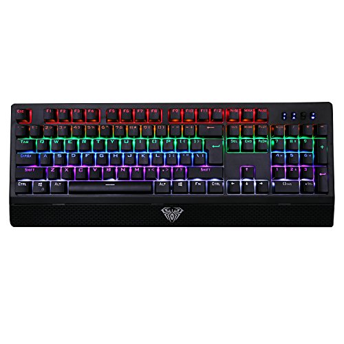 - Feature : Wings of Liberty Mechanical Keyboard RGB Version, 100% AULA RGB mechanical key blue switches for ultimate performance, tactile and clicky feedback, Great for typist, programmer, writer and gamer etc. / Multicolor per-key backlighting for virtually unlimited game customization, tens of pre set backlit mode and 3 macro backlit modes. / Double-shot injection molded keycaps and 100% anti-ghosting with 104 key rollover on USB, 60 million times lifespan clicky switches. / System support: Windows 2000, Xp, Vista, 7, 8,10/Mac OS and USB 2.0 port. / BUY WITH ABSOLUTE CONFIDENCE thanks to our 100% money back lifetime guarantee.