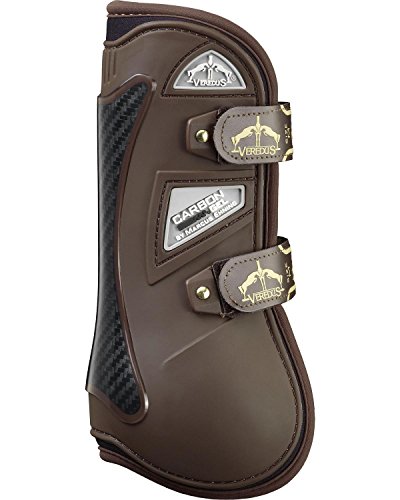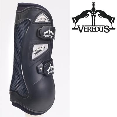 Studio : Veredus, VEREDUS Publisher : Veredus, VEREDUS Binding : Misc. Product Description The most advanced horse boot with carbon fiber and gel technology makes these the best fitting and performing open front boot for jumpers. The anatomic design give more freedom of movement to knee and fetlock, while providing maximum comfort and support. The dual density shell provides more protection. The main shell is composed of semi-rigid polyurethane while the rear "x" strike plate is made of carbon fiber to provide extreme durability and protection after repeated strikes. The gel lining in the strike plate provides the ultimate in shock protection. Interchangeable straps with Velcro? brand fasteners allow for more precise adjustment. Fast release ferrules with narrowing hook holes allow fast and easy hooking and release, without compromising security. Made in Italy. 0