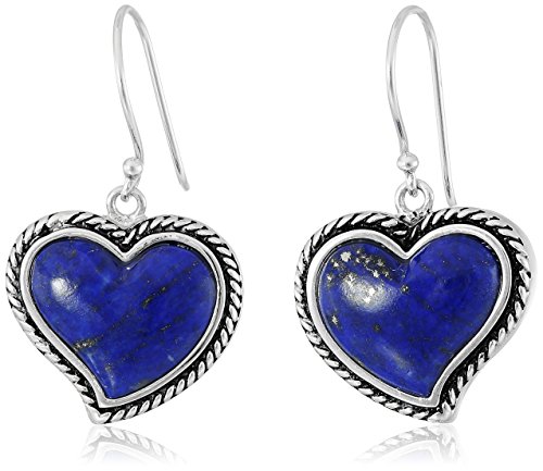 STERLING SILVER LAPIS LAZULI HEART INLAY DROP EARRINGS