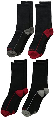-. Binding : Apparel -. Brand : PEDS -. Department : boys -. Feature : Coolmax xtralife fabric lasts longer and keeps feet dry, cool and comfortable / Lycra fiber offers the ultimate in comfort and fit / The perfect hole proof sock / Endur technology-constructed to last up to 6X longer than our regular cotton blend socks / Satisfaction guarantee - if you are not completely satisfied with your PEDS product, simply return them to us for replacement -. Label : PEDS Boys 8-20 -. Manufacturer : PEDS Boys 8-20 -. Model : 81244900210220 -. PackageQuantity : 1 -. ProductGroup : Apparel -. ProductTypeName : SOCKSHOSIERY -. Publisher : PEDS Boys 8-20 -. Studio : PEDS Boys 8-20 -. Title : PEDS Big Boys' Endur Crew Half Cushion Socks Black with Accents Large 4 Pairs