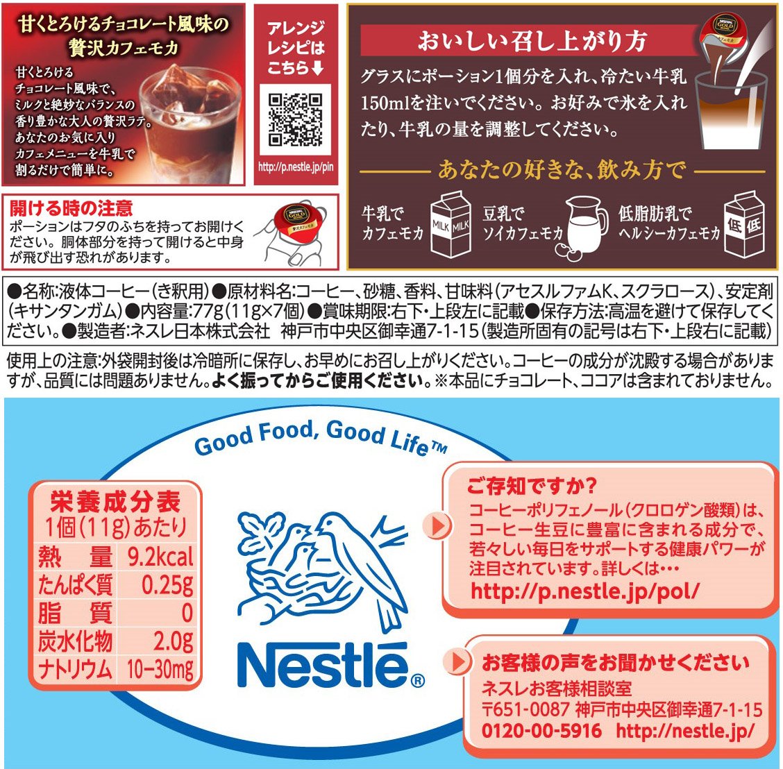 原材料:コーヒー、砂糖、香料、甘味料(アセスルファムK、スクラロース)、安定剤(キサンタンガム)