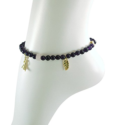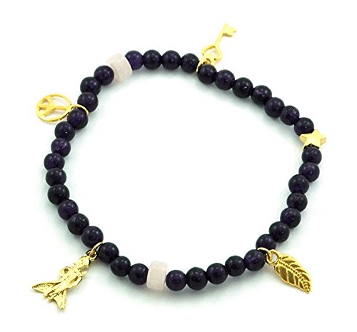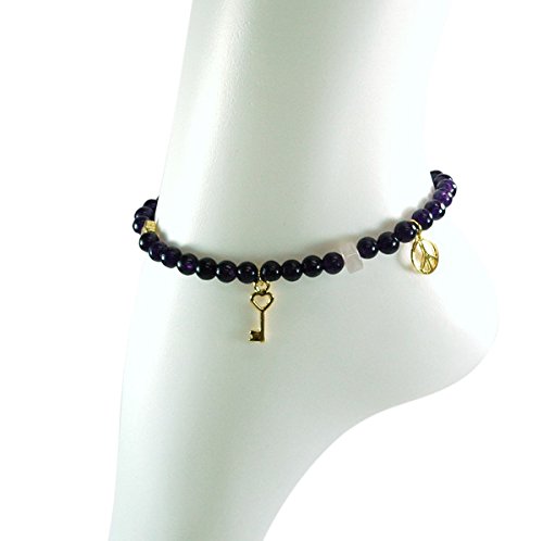 -. Binding : Jewelry -. Brand : MIZZE Made for Luck Jewelry -. Department : womens -. Feature : A beautiful handmade "Dream Catcher" charm anklet / Made with Jadeite Jade gemstones (dyed purple) / All charms are gold plated / Anklet measures 9.5 inches / Stretch anklet, one size fits most ankles -. Label : MIZZE Made for Luck Jewelry -. Manufacturer : MIZZE Made for Luck Jewelry -. Model : MZ6010PJG -. MPN : MZ6010PJG -. PartNumber : MZ6010PJG -. ProductGroup : Jewelry -. ProductTypeName : FASHIONNECKLACEBRACELETANKLET -. Publisher : MIZZE Made for Luck Jewelry -. Studio : MIZZE Made for Luck Jewelry -. Title : Purple Jade "Dream Catcher" Stretch Anklet with Little P.R.Ince, Peace & Love Charm for Happiness