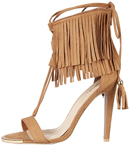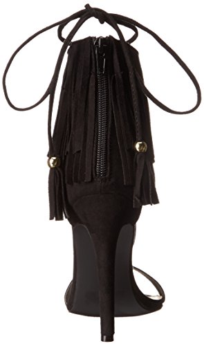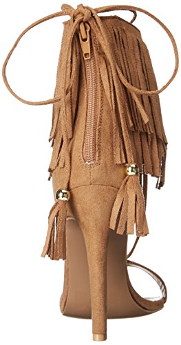 Product DescriptionThis gorgeous fringe number combines multiple trends within the same heel! wrap the laces up your leg or around your ankle. Sandal has back zipper for ease of entry.0