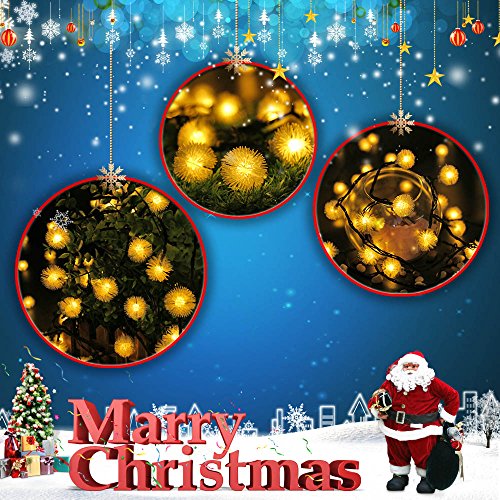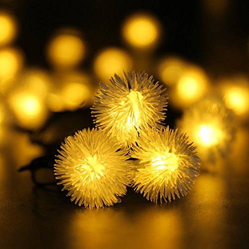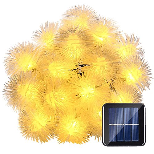 Solar Powered String lights: 20 Colorful Chuzzle Ball LED on a 15.7ft light strand (4.9ft lead cable included), solar panel(2V/100mA) with built-in 600mA NI-MH AA battery, low voltage power, non plug-in