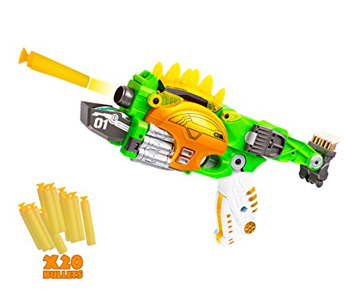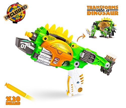 -. Feature : Big Mo's Toys Transformer Dino figure converts to a Nerf style gun that shoots foam darts. / Includes 1 Nerf Style Gun / Dinosaur Figure and 20 foam darts. / Help develop your child's fine motor skills as he / she figures out how to transform the toy between the two forms. / Ideal for children as Holiday gift, birthday gift, behavioral gift, and much, much more. / Tested and child safe. Made of High Quality Materials and is extremely durable.