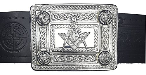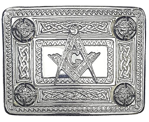 Product Description This belt buckle features a Masonic with Celtic knot design. This cast brass kilt belt buckle has a chrome plated finish and is designed to fit all standard kilt belts (2.25 inch wide). Measures approximately 3.75 inch X 2.75 inch. 0