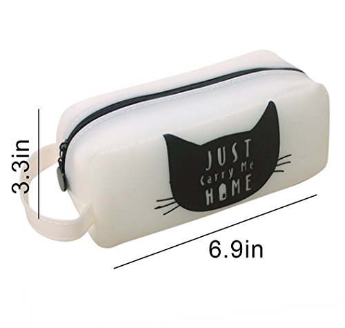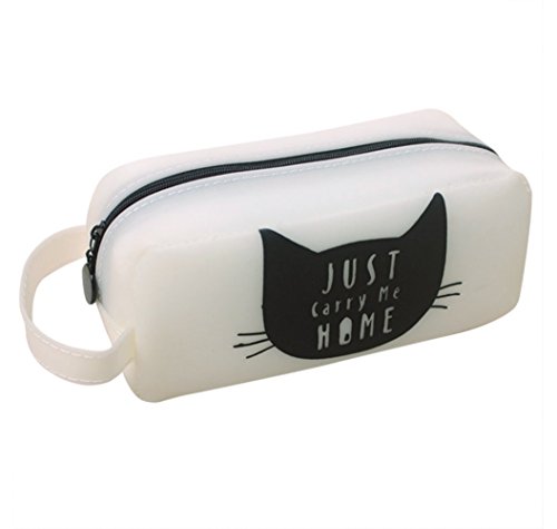 Cute Cat Design Students Large Capacity Pencil Case Makeup Cosmetic Bag Silicon Stationery Storage Pouch Bag(White Color))