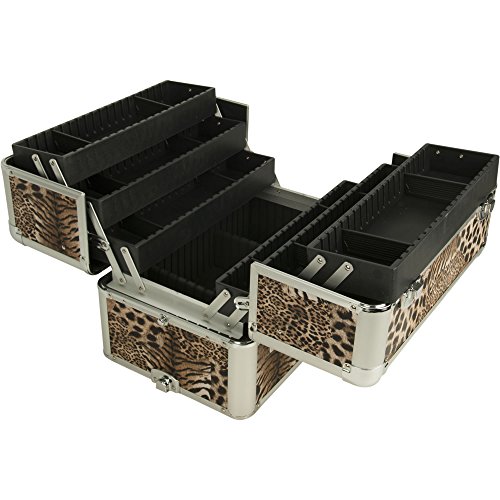 - 2-in-1, professional makeup rolling case, in this beautiful new leopard print with silver aluminum trimming