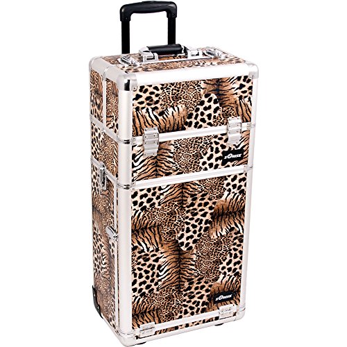 Sunrise Del Corso 2-In-1 Rolling Makeup Case Professional Nail Travel Organizer Box, Leopard, 24 Pound