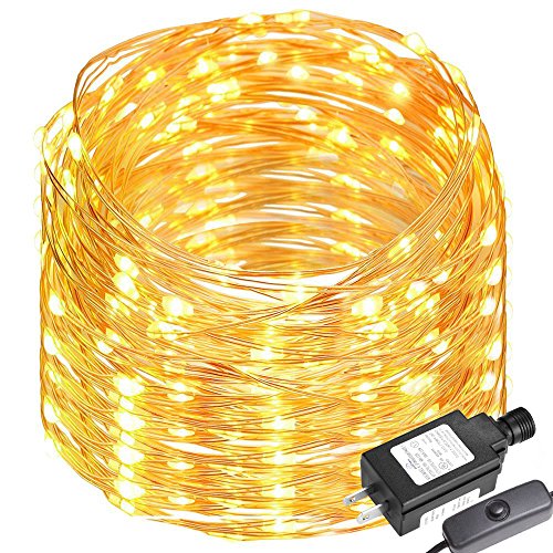 LE 65ft 200 LEDs Copper Wire LED Warm White Fairy String Lights Waterproof String Lights Firefly Lights for DIY Garden, Patio, Wedding,Tree, Party, Christmas, Thanksgiving (Power Adaptor Included)