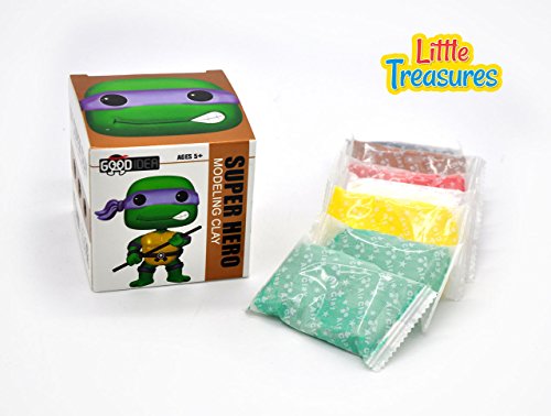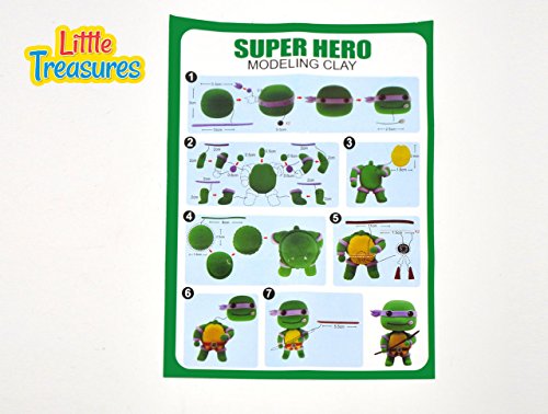 The Little Treasures high quality super hero modelling clay set is the perfect gift for both boys and girls over the age of 5 years old. The set is perfect for allowing your kids to get creative with their imaginations and also let them train their instruction following skills with the detailed instruction manual taking your child by the hand and allowing them to follow the step by step process with added illustrations making them able to put together their very own super hero by themselves, using their independence and creativity. The set comes with 7 different colours of well-packaged high quality clay which your little one will love putting together to create the super hero depicted on the packaging. The child's finished product will be a ninja turtle which they can then enjoy playing with time and time again while it serves as a reminder of the independence and creativity they used when using their artistic talent when creating their very own super hero. Description: The Little Treasure's Superhero Modelling Clay Set comes complete with beautifully designed packaging to entice your child's imagination. The set is perfect for boys and girls over the age of 5. The set comes with 7 separately packed colours of clay which your little one will use to construct the super hero. Alongside the clay is a detailed, illustrated instruction manual which your child can use as a visual aid when they put together the toy - making the construction of the toy something your child can do by themselves or with minimal help, remaining challenging enough to give your child a sense of achievement when it has been completed.Feature