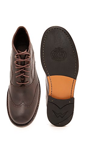 Studio : Wolverine Publisher : Wolverine Binding : Apparel Product Description Made for the everyday gentleman, the Wesley reinvents the refined style of the classic men's wingtip for the modern working man. The perforated wing tip design is highlighted with Horween® Rowdy Leather upper, the distinctive details and weathered leathers lend to the authentic design. The Wesley is hand-crafted and features a leather sheepskin lining, with a leather and rubber outsole with GoodyearTM Welt construction for flexible durability. 0