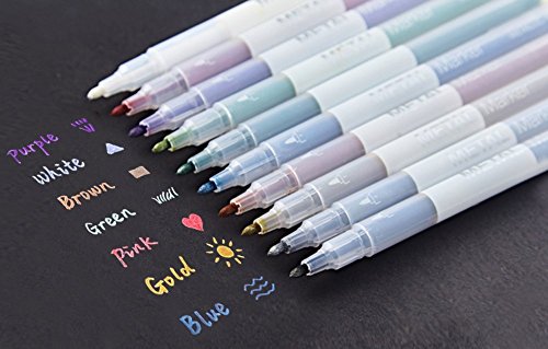 -. Title : PHEZEN 10 Colors Metallic Marker Pens Set for Scrapbook or DIY Card Making, Assorted Colors Art Markers and Graphic Drawing Manga Water Based Ink Brush Pens