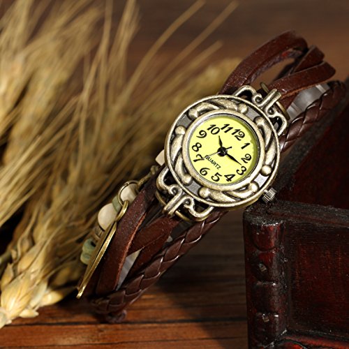This amazing weaved leather bracelet with watch beads for girls and ladies with brown leather belt and a buckle design has been made by hand with extreme caution to provide quality standard for Wrist Watches for Women.
