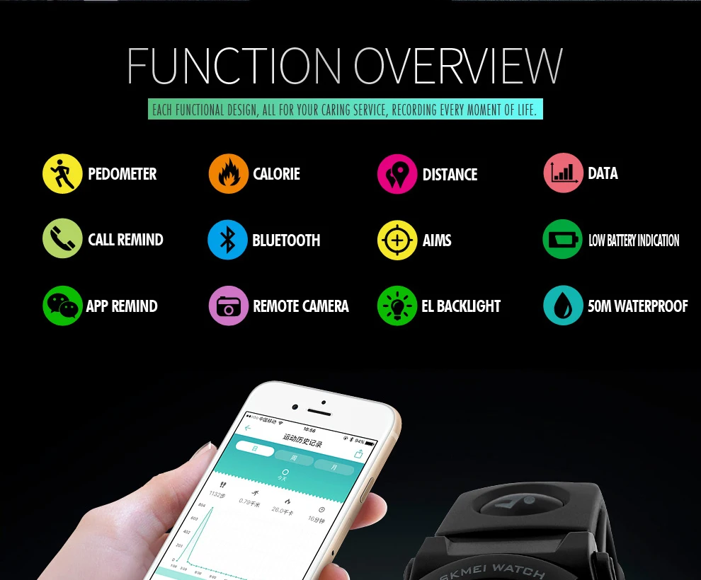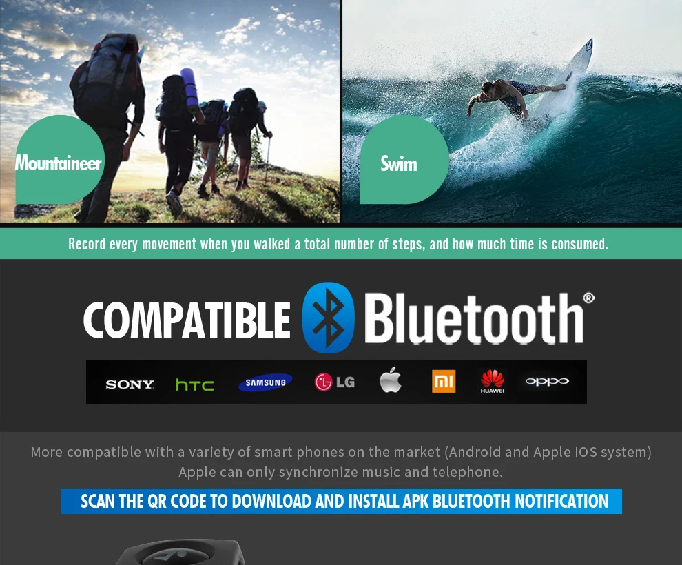 More features 1:Pedometer,Calorie,App Remind,,Distance