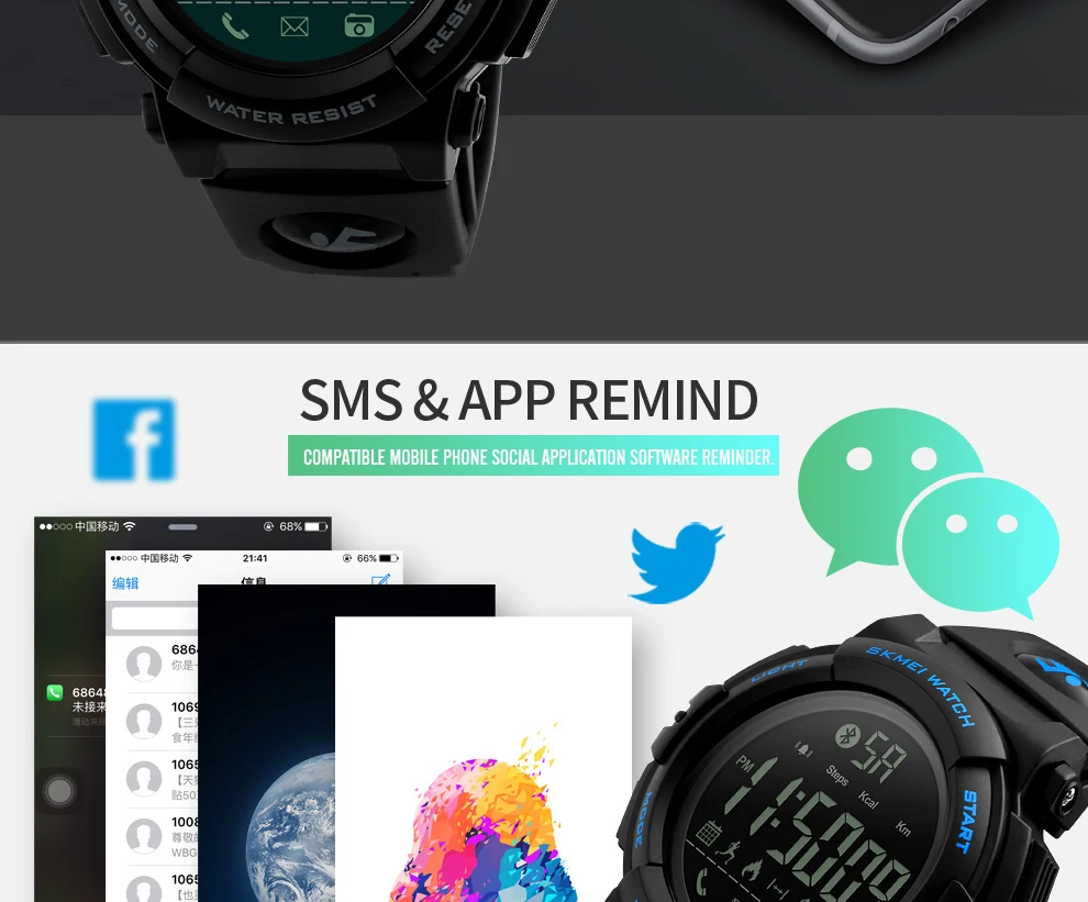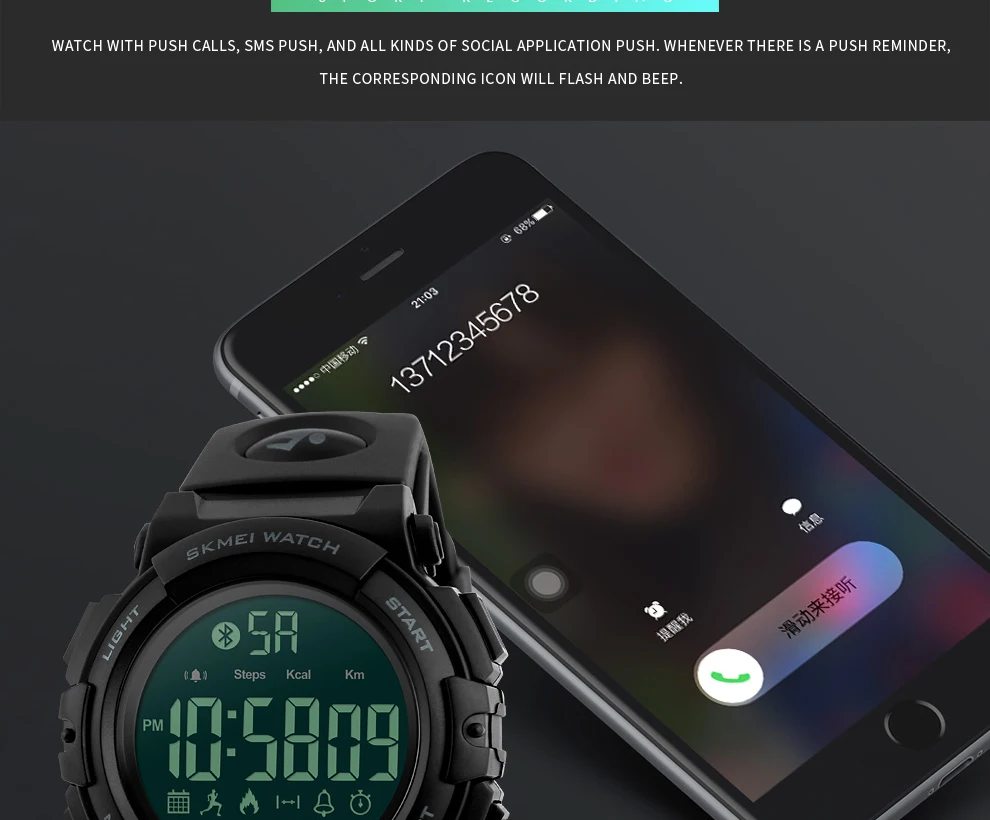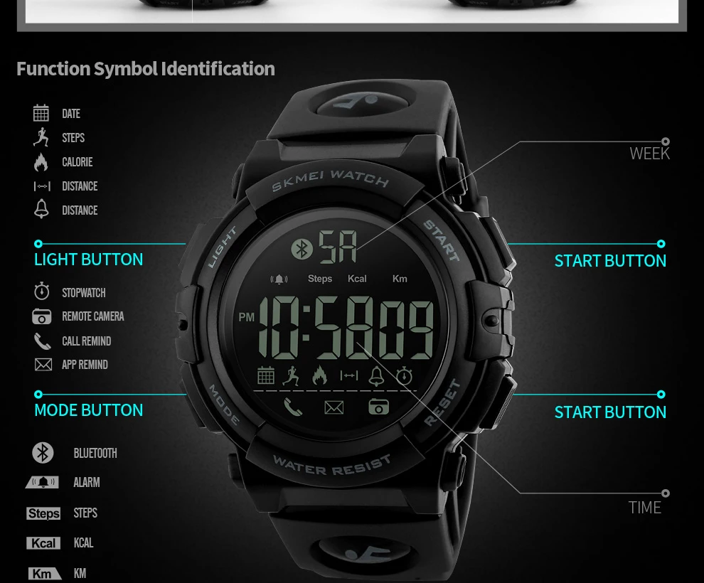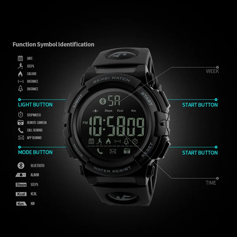Feature:Call Reminder,Complete Calendar,Shock Resistant,LED display,Bluetooth,Auto Date,Message Reminder,Week Display,Water Resistant,Chronograph,Back Light,Alarm