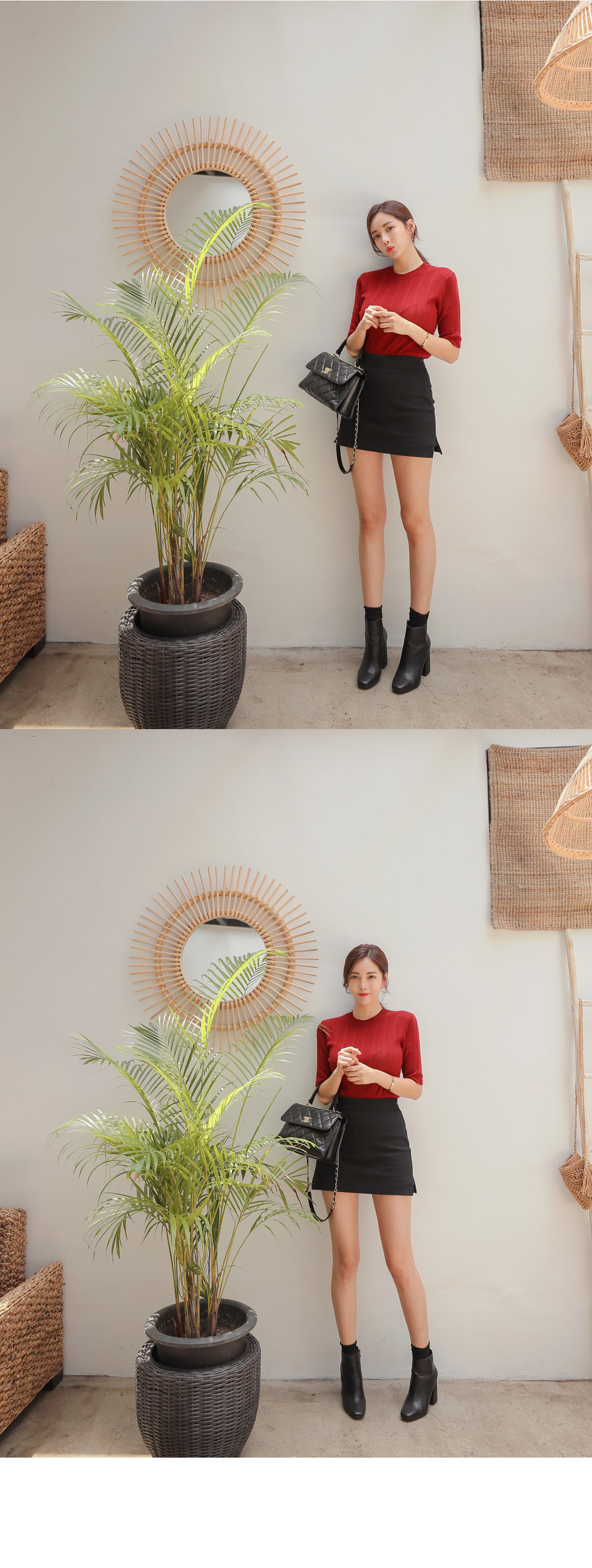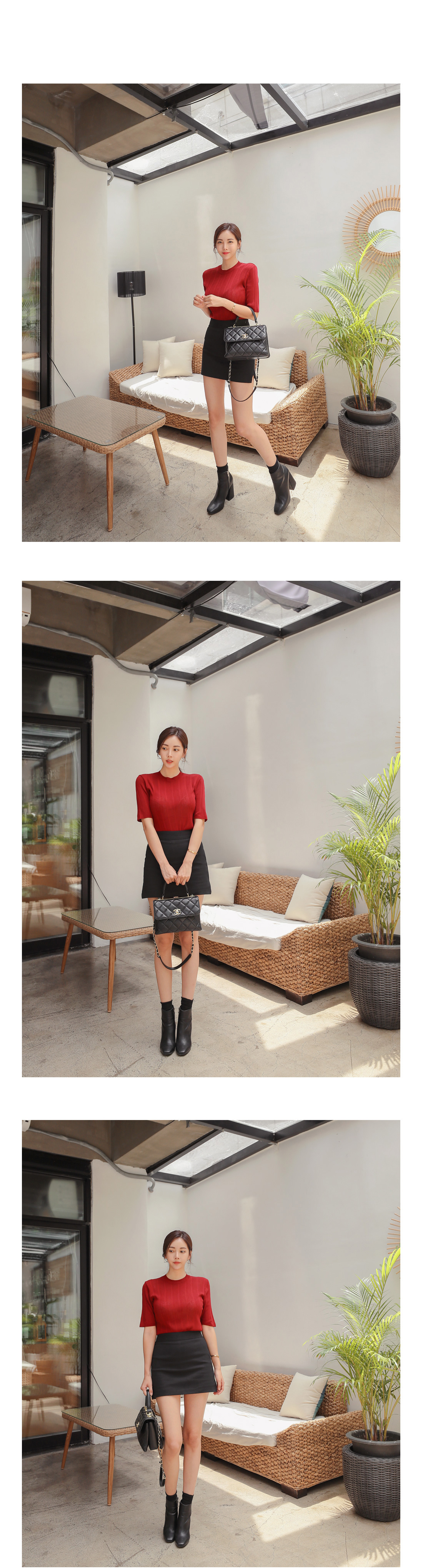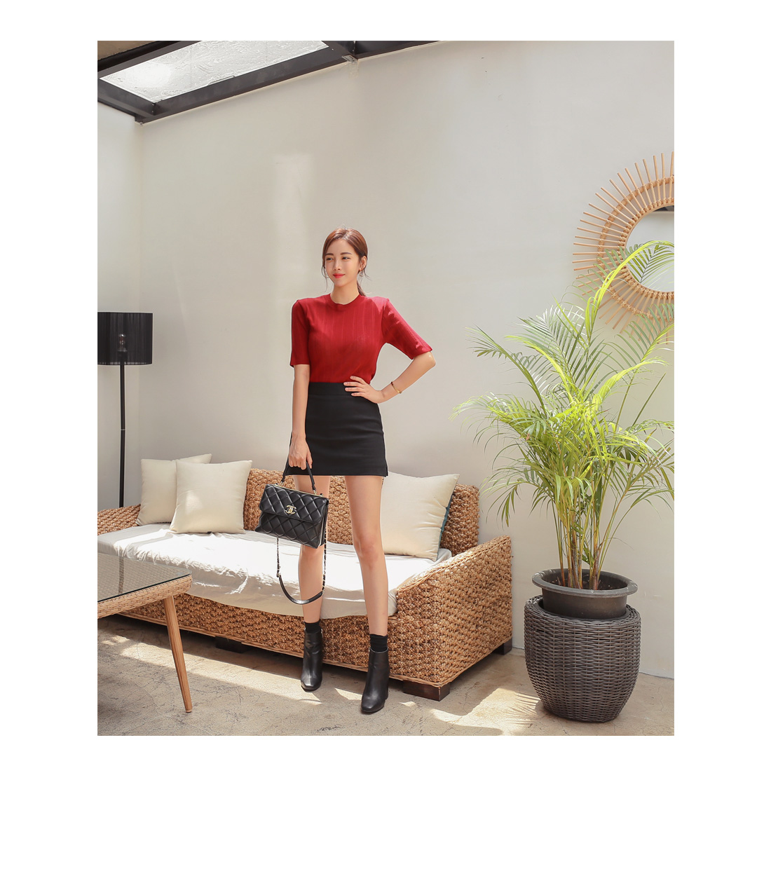 군더더기없이 떨어지는 미니스커트 디자인으로