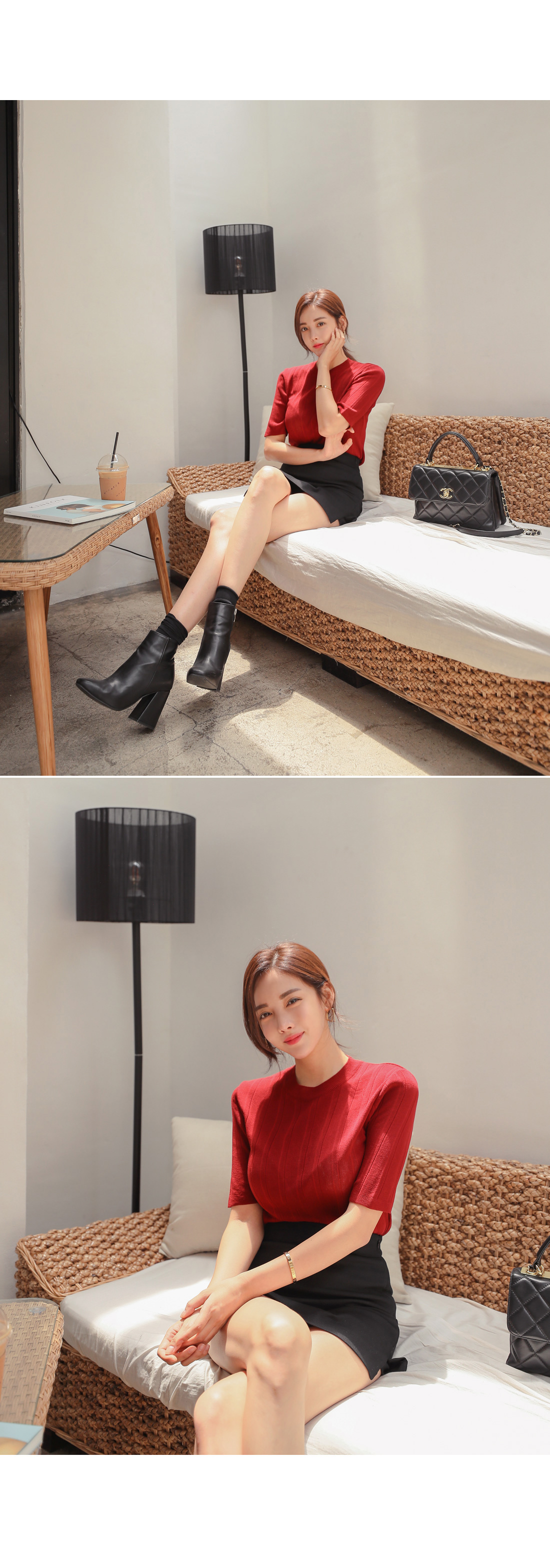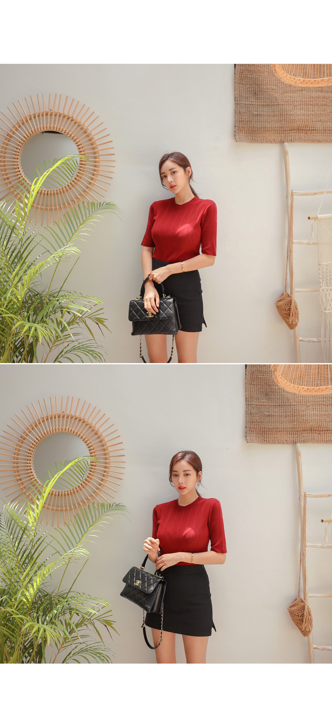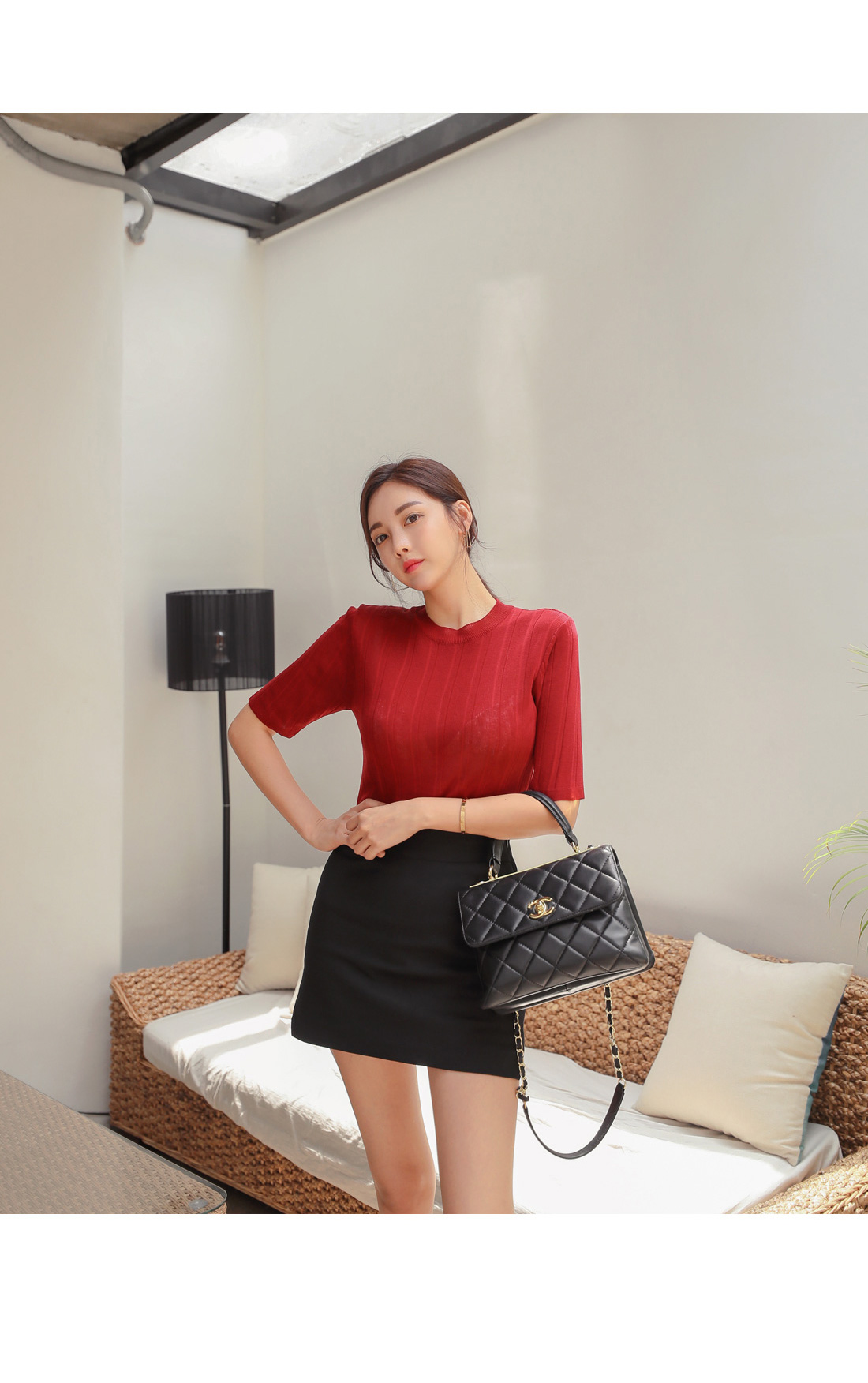 군더더기없이 떨어지는 미니스커트 디자인으로