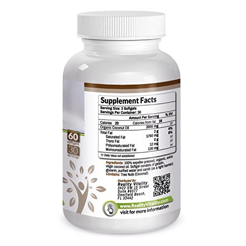 -. Title : Best Organic Virgin Coconut Oil 1000mg Softgels - Boost Energy - Increase Metabolism - Helps Weight Loss - Strengthen Immune System - Improve Skin Nails Hair - Raises Good Cholesterol - 60 Day Vitality Health Guarantee
