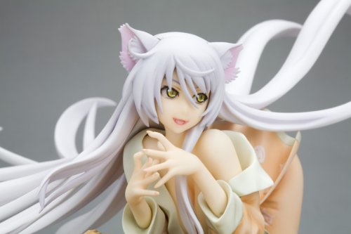原型制作:間崎祐介(桜前線)西尾維新原作、2012年はアニメ2期、劇場作品も公開予定の「化物語」シリーズより、主人公・阿良々木暦のクラス委員長“羽川翼”が怪異“障り猫”に魅せられた姿「ブラック羽川」が遂にコトブキヤのフィギュアになって登場です!猫耳からうねるように広がる真っ白な髪、はだけたパジャマの胸元から覗く豊かなバスト。触れた対象の力を吸い取る“エナジードレイン”の能力を持つ「ブラック羽川」の姿を妖艶さたっぷりに再現しました。机の上に肘を掛けて座り込み、上目遣いに不敵に微笑む姿は何か企んでいるかのよう。破壊された2脚の学習机と木屑の豪華なベースは、「つばさキャット」の世界観を演出。もちろんパジャマの可愛い猫マークもきちんとプリントされています。女の子と怪異が融合した、見ごたえたっぷりの「ブラック羽川」の姿に大満足すること間違いなしです!Feature