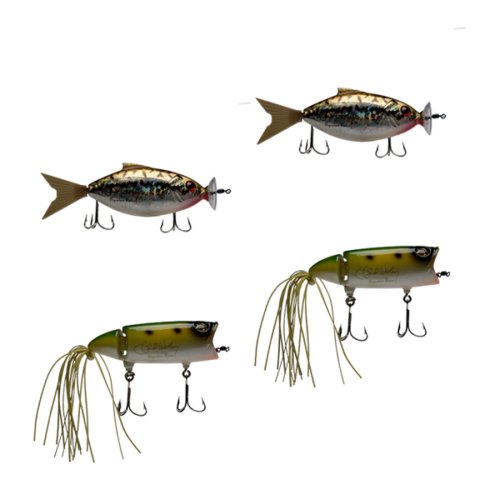 -. Feature : Spring-loaded, self propelled fishing lures / Precision spring-powered motor/ gear box / Hand-painted design / Jointed Body, and ultra-sharp hooks. / 2 Moto Minnows and 2 Moto Chugs included