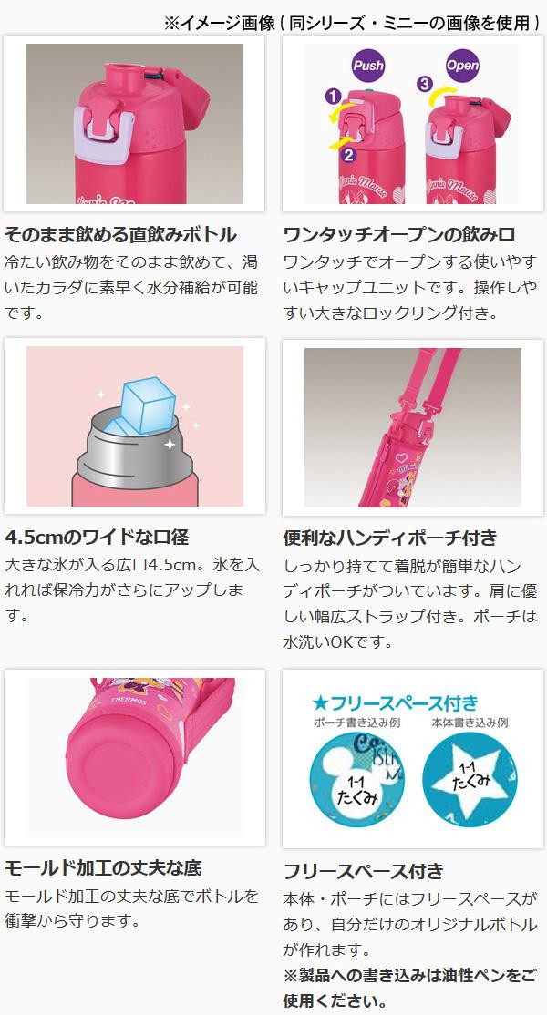 | 小さなお子様でも使いやすいワンタッチオープンの保冷専用ボトルです。4.5cmのワイドな口径で、氷を入れれば保冷力がさらにアップ。ハンディポーチは水で丸洗いできるから汚れもさっと落とせます。国内では商品が少ないアメリカ本国監修のグラフィックです。楽しいテーマパークのデザインで水分補給をもっと楽しく♪ |