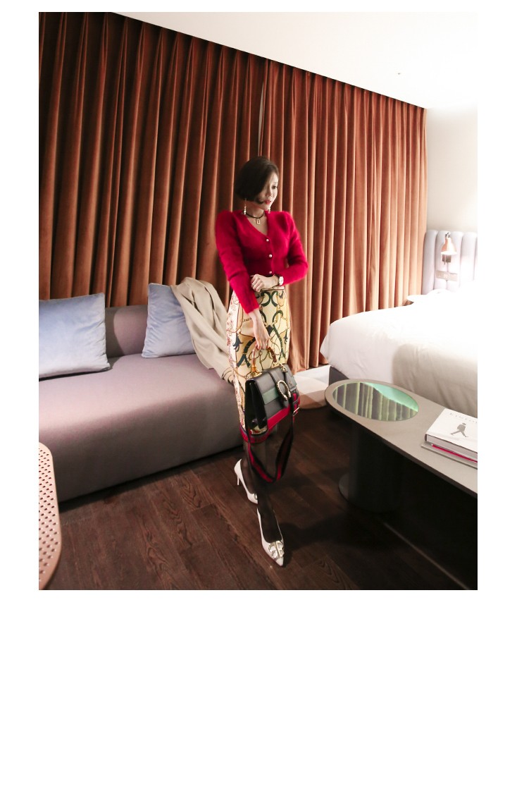 ポイントカラーで腰と裾に統一感を与え、