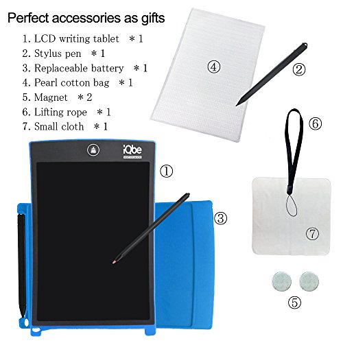 -. Binding : Personal Computers -. Brand : iQbe -. Feature : Erase your image with the touch of a button - and a friendly flash from the liquid crystal display / Sealed 3V watch battery never needs replacing / The Boogie Board tablet is an ultra 1/8" thin and is easy to take with you in a purse, scheduler, briefcase or backpack / The case and LCD are made from durable plastic materials; Safe for school use and all around the house, office and car / The Boogie Board tablet's pressure-sensitive LCD writing surface creates lines of different thickness based on how hard you push - just like paper and pen -. Label : iQbe -. Manufacturer : iQbe -. MPN : Board -. PartNumber : Board -. ProductGroup : PC Accessory -. ProductTypeName : COMPUTER_INPUT_DEVICE -. Publisher : iQbe -. Studio : iQbe -. Title : iQbe Writing Board 8.5-Inch LCD Electronic Tablet