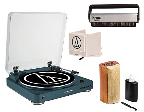 Audio Technica AT-LP60NV-BT Bluetooth Turntable (Navy) with Vinyl Brush Cleaner & Accessory Kit