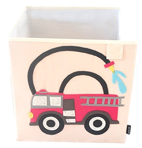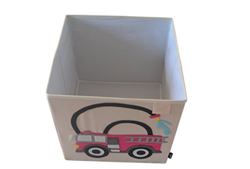 Toy Storage Box Bin Organizer Collapsible, White- 100% Money Back Guarantee (Fire Truck)