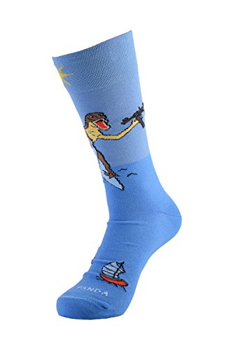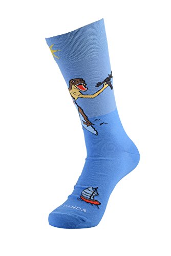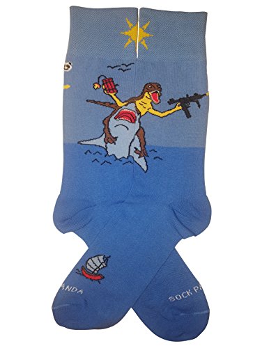-. Binding : Apparel -. Brand : Sock Panda -. Color : Blue Black Red -. Department : mens -. Feature : Attention getting design - Guaranteed to start a conversation / Up your Sock Game with these fun socks! / High quality fabric that will not rip or tear - Very Comfortable / 10-13 (will fit men's shoe size 8-12) / Your purchase donates a pair to the homeless -. IsAdultProduct : 0 -. Model : Dinosaur and Shark -. PackageQuantity : 1 -. ProductGroup : Apparel -. ProductTypeName : SOCKSHOSIERY -. Size : Large -. Title : Dinosaur and Shark Socks from the Sock Panda