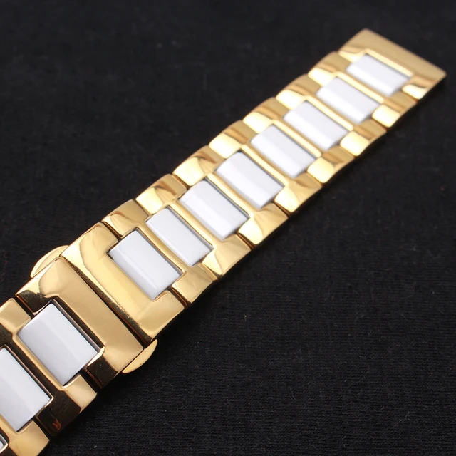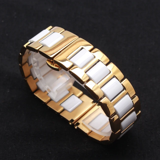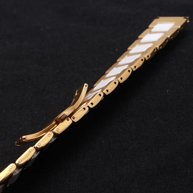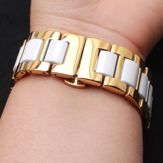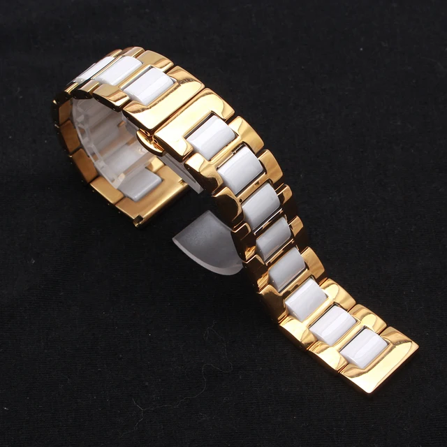 | [해외] 옐로우 골드 스테인레스 스틸 손목 시계 화이트 세라믹 광택 시계 액세서리 아름다운 남성 여성 시계 14 16 18 20 22 미리메터 |