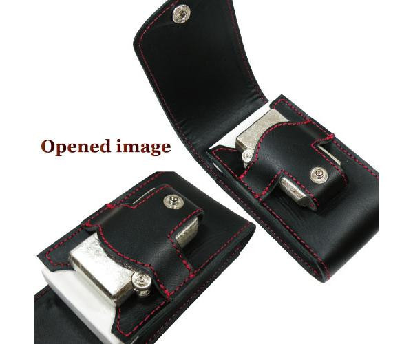 ライターも入り、裏面のベルトループにはカードなどが入る場所も付いています。コンパクトかつ使い勝手の良いケースです。