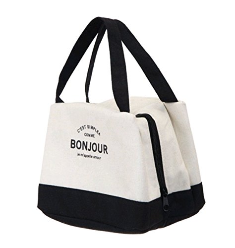 The Fabrica Insulated Lunch Bag, Reusable Cooler for Keep Bento, Snack, Fruits and Beverage Fresh, with 2-Ice Pack and a Message Card For Gift (Ivory Cotton Handle Bag)